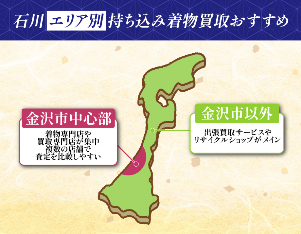 持ち込み店舗に着物を持ち込む店舗が多い金沢市内へのアクセスが良い場所に住んでいる対面でしっかりと説明が聞きたい